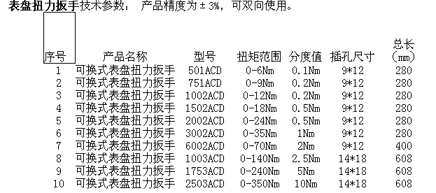 表盤式扭力扳手規格
