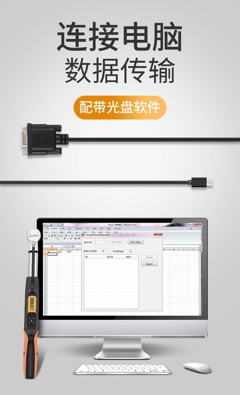 100N.m帶通訊接口連接電子力矩扳手,通訊接口數顯扭力扳手